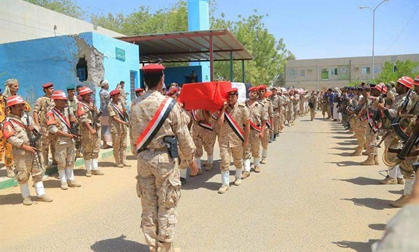 شيعت أعداد كبيرة من اليمنيين، اليوم الأحد، يتقدمهم نائب الرئيس علي محسن الأحمر جثمان قائد المنطقة العسكرية الثالثة اللواء الركن عبد الرب الشدادي الذي استشهد على أيدي الحوثيين والقوات الموالية لهم في محافظة مأرب شرقي البلاد.